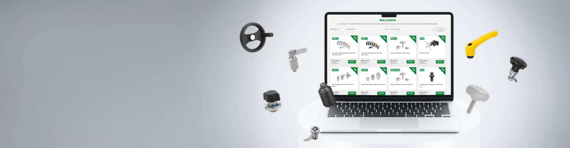 The 06000 product range includes operating and locking elements such as knurled nuts and knurled screws, cross handles and star grips, clamping levers and clamping levers.