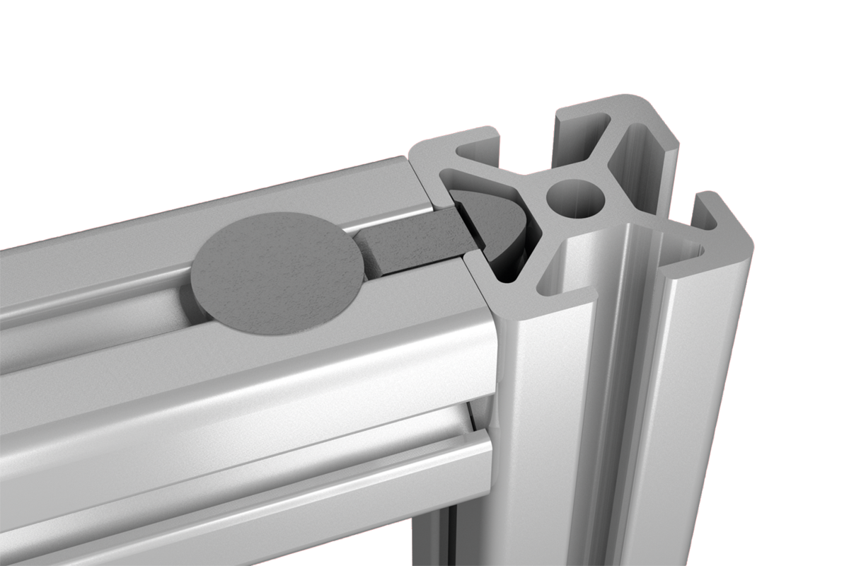 The connecting sets are used for connecting two aluminium profiles at right angles. They allow a free positioning of profiles. The connection is non-rotating (the rotation lock can be broken off). For larger profiles several connecting sets can be mounted on the end for greater strength. Retrofitting into existing constructions is possible.