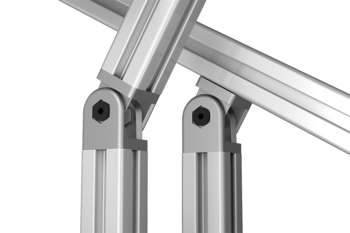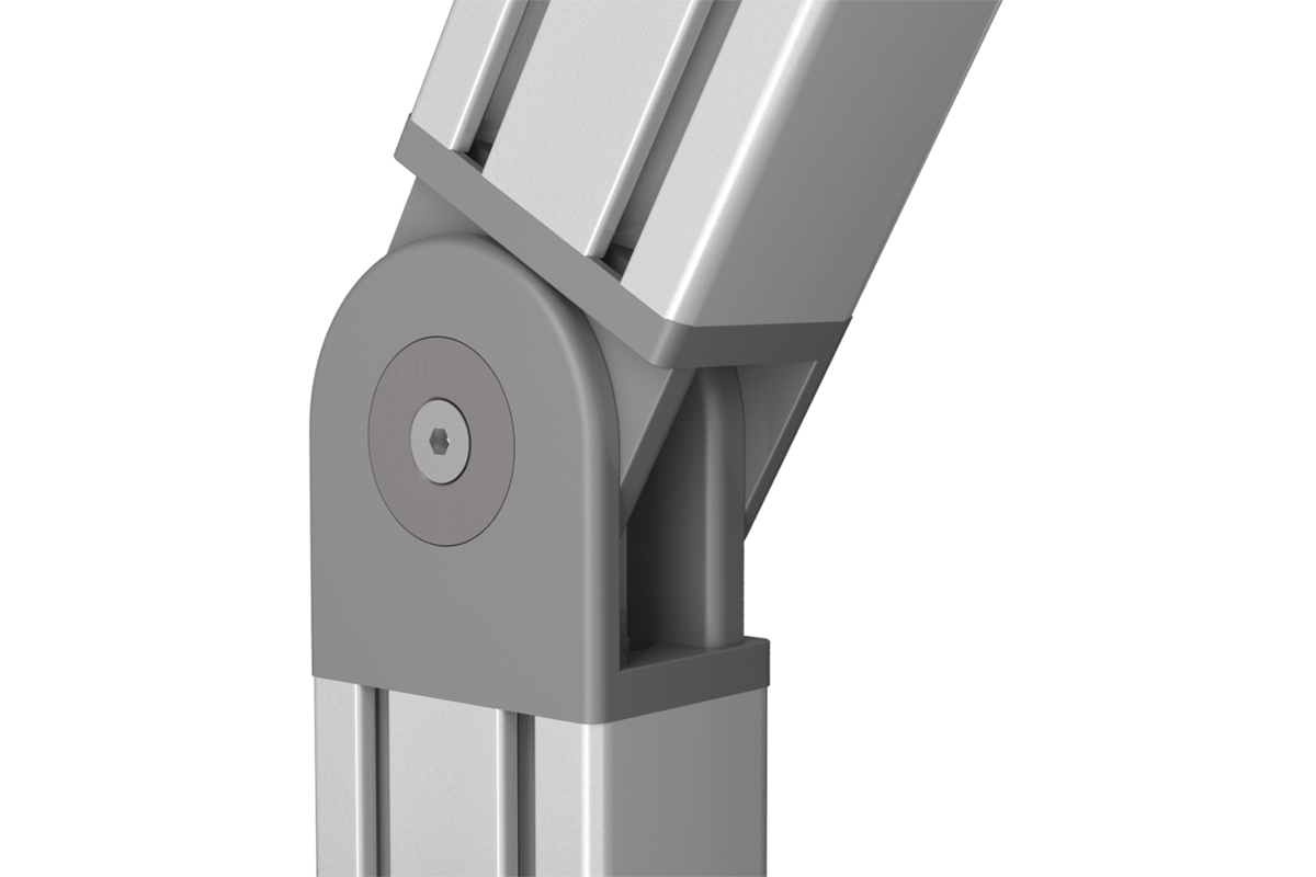 The adjustment range is 0° to 180°. The joint can also be used as a heavy hinge.