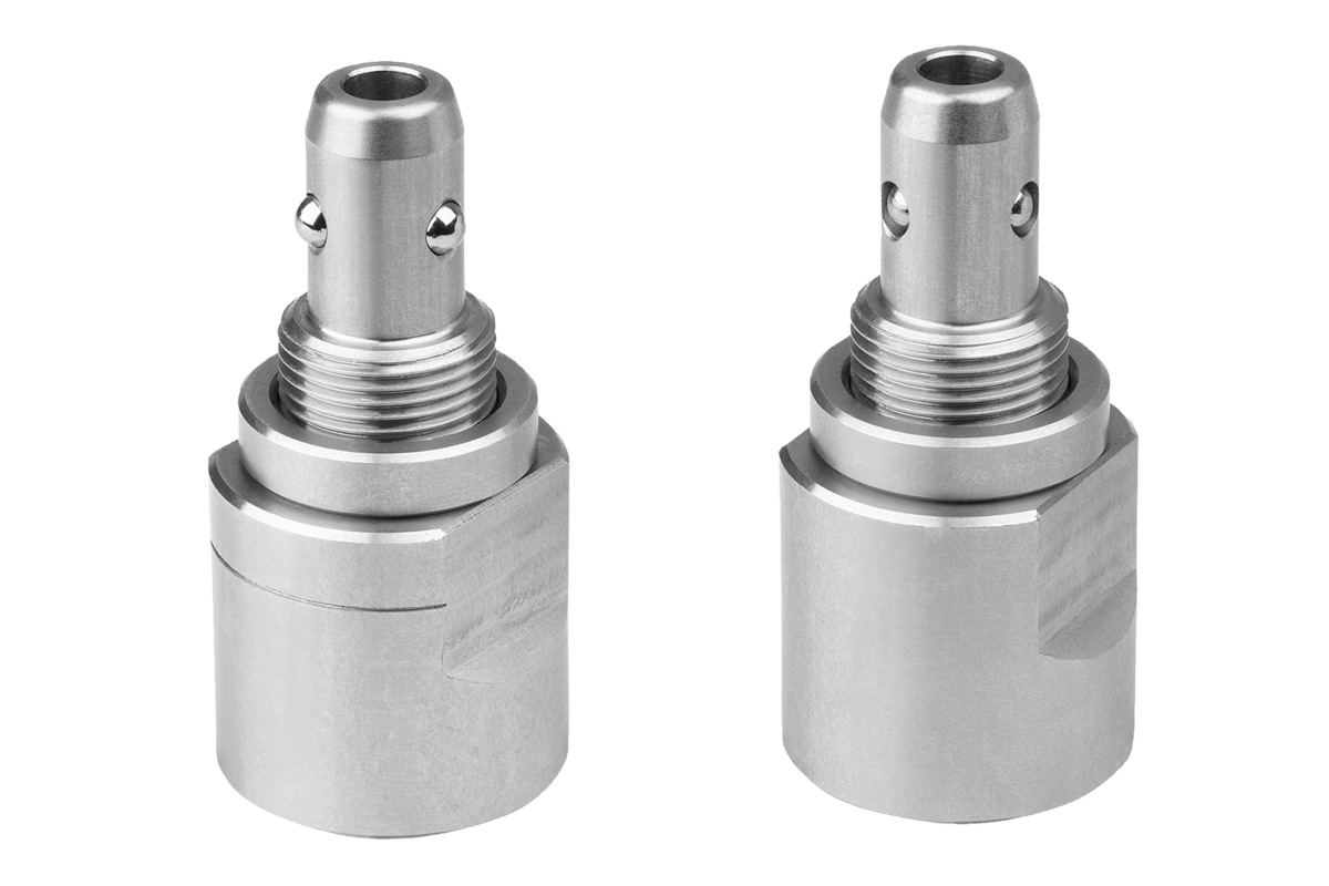 By locating cylinder Form B, the clamping balls are initially retracted. Compressed air pushes the balls out.