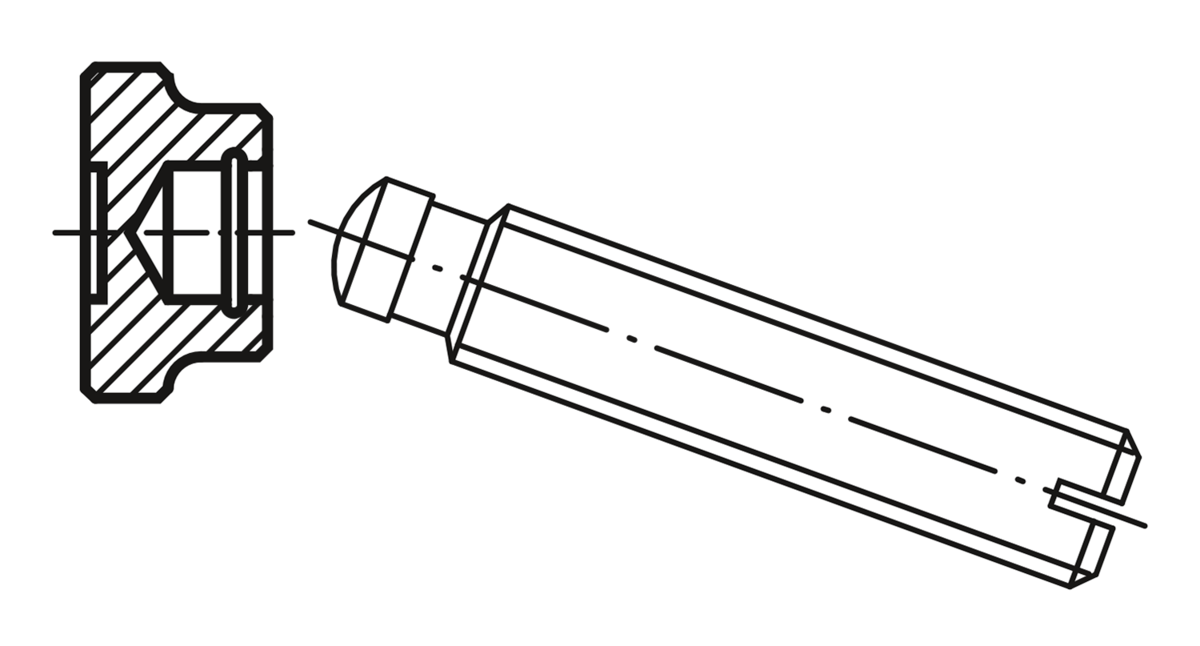 To press onto a thrust point, incline the point as far as possible over the snap ring opening and twist in. The snap ring is supplied assembled.