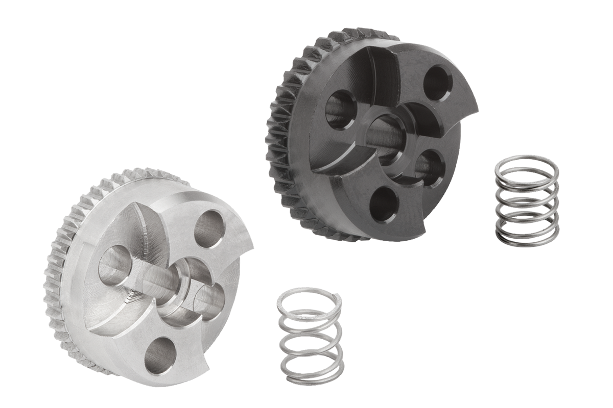 A stainless steel spring is supplied with the external toothed ratchet elements Forms E to H.