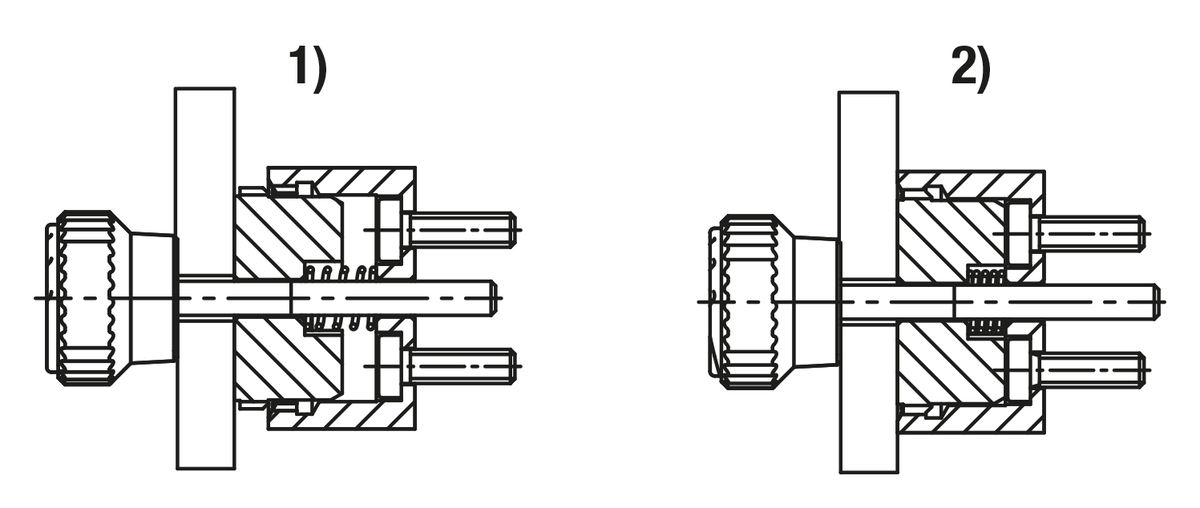 A stainless steel spring is supplied with the external toothed ratchet elements Forms E to H.