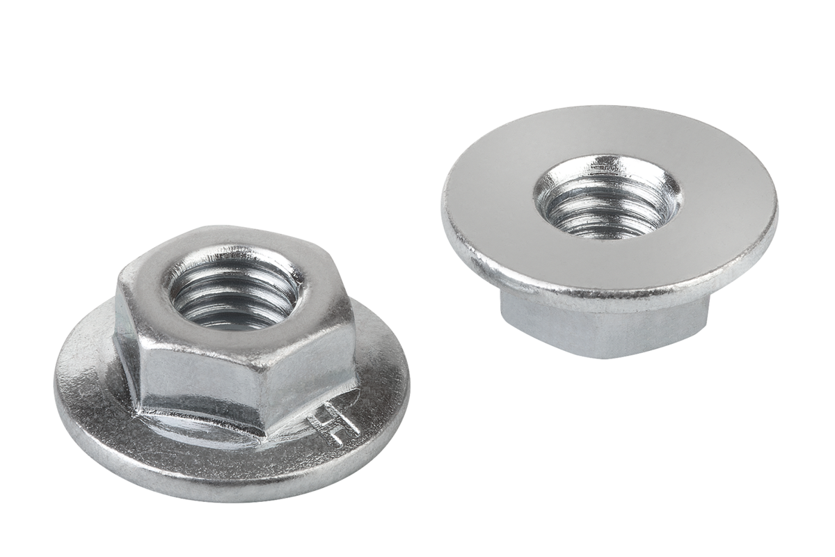 Nut with a large collar. Ideal together with a hammer-head screw.