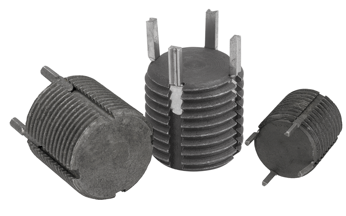 Solid body threaded inserts are used where threaded holes that have been drilled too large or drill hole spacings that have not been observed in workpieces need to be redone.