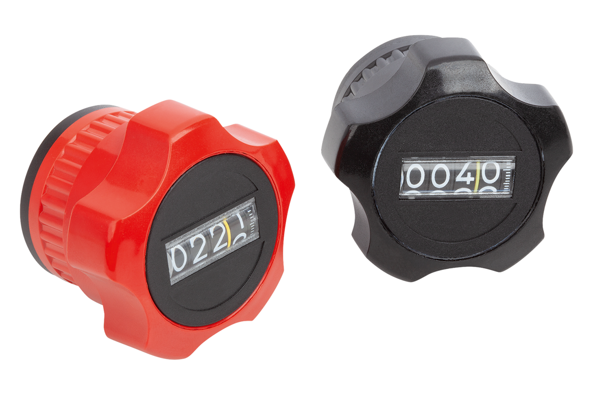 Adjusting knobs with integrated position indicators allow direct readout of set measurement values such as lengths, flow rates, speeds, etc, at a glance. In addition, the display value can be selected per spindle rotation (corresponding spindle pitch), with the different display values being realized by a variable ratio transmission. The torque support allows the use of the adjusting knobs in any assembly position, even in case of high vibrations.