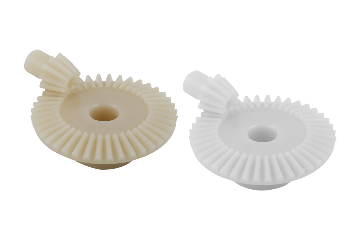 Injection moulded, straight teeth. Engagement angle 20°. Axis angle = 90°.