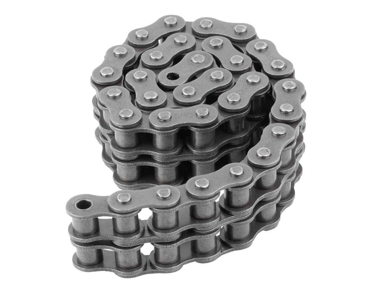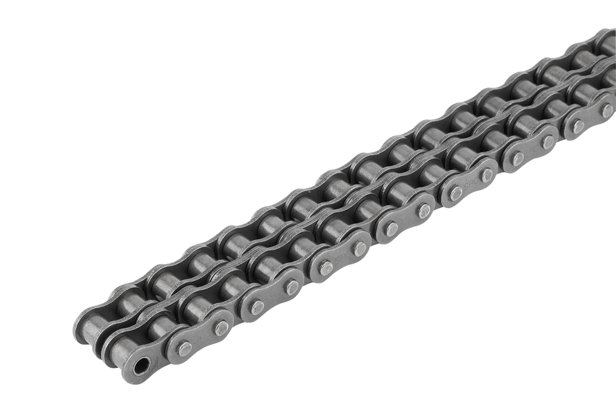 European-type roller chains acc. to DIN ISO 606 with curved link plates (ISO No. 06 with straight links). All chains are pre-stretched. Initial lubrication: anti-corrosion mineral based oil.
