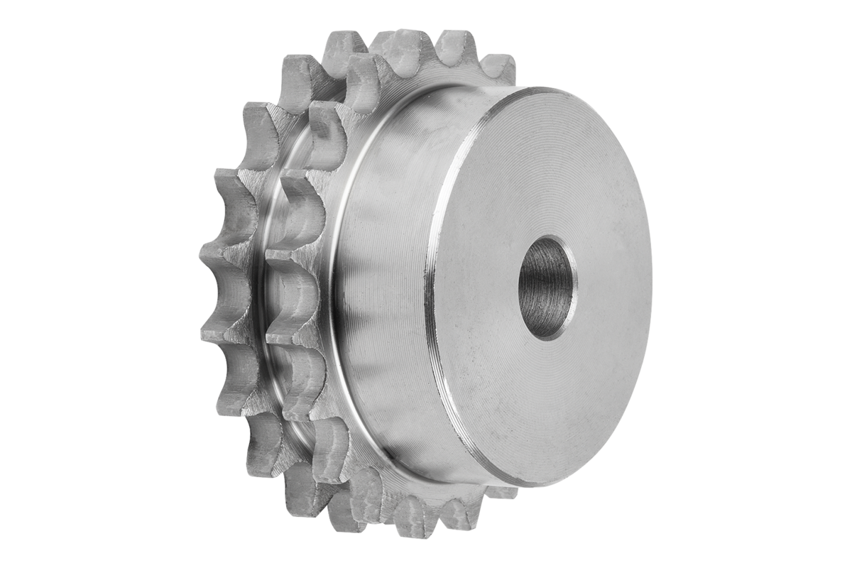 The sprockets have a centre bore or are pre-drilled (this can vary due to production methods). For this reason, the dimension D3 max. given in the table is the maximum diameter of the bore that the sprockets are supplied with. This pilot hole/centre bore can be customised with a reamed hole, reamed hole with keyway or a tapped hole by the customer. Alternatively, bushes can be fitted by the customer to reduce the diameter.