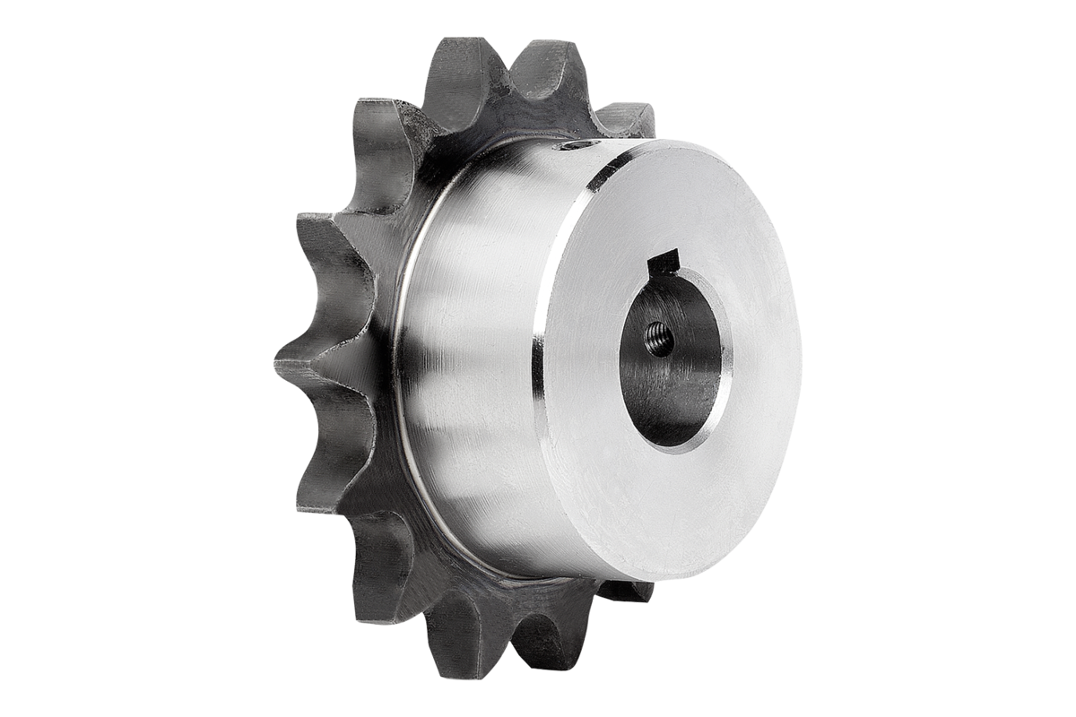 Ready to install sprockets with hub on one side for DIN ISO 606 roller chains. Teeth are milled and inductively hardened.