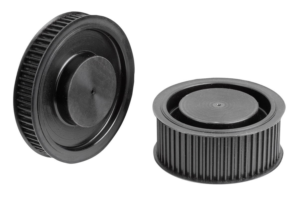 Standard HTD profile with metric pitch (half-round teeth). At least one toothed belt pulley must have a rim flange. The toothed belt pulleys have a centre bore or are pre-drilled (this can vary due to production methods). For this reason, the dimension D2 max. given in the table is the maximum diameter of the bore that the toothed belt pulleys are supplied with. This pilot hole/centre bore can be customised with a reamed hole, reamed hole with keyway or a tapped hole by the customer. Alternatively, bushes can be fitted by the customer to reduce the diameter.