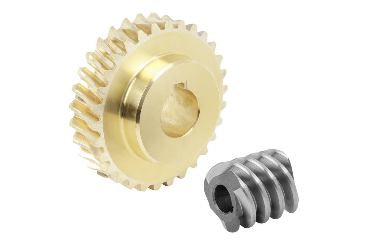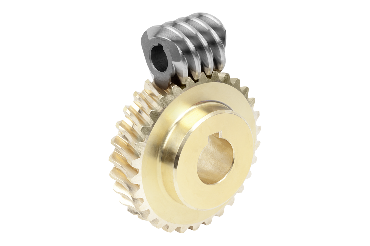 A worm gear set consists of a worm screw and the worm wheel. Suitable for constructing worm gears with an axis angle of 90°. With a worm gear drive, very high slow ratios can be realised with just one stage.