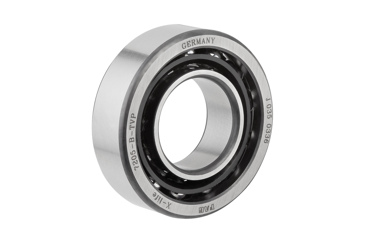 Single row angular contact ball bearings accept high radial and axial loads. Axial loads are absorbed in only one direction against the shoulder guide. For axial counter support a second bearing mounted inverse is required. The pressure angle of 40° make these bearings highly resilient. Suitable for high speeds.
