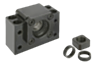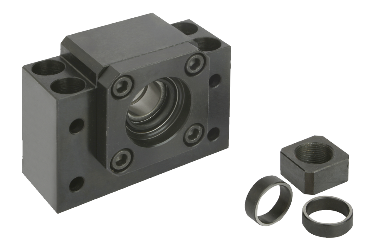 The axis height of the spindle bearings is matched to the floating bearing unit 24078. The fixed bearing units are composed of a housing with 2 angular contact thrust ball bearings with seals. Preloaded by a an initial flange. With backstops and a locknut.