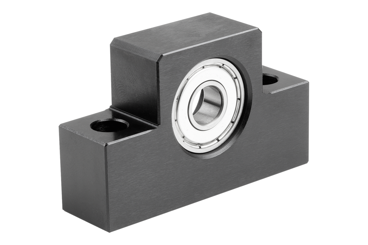 The axis height of the spindle bearings matches the fixed bearing unit 24078-01. The floating bearing units consist of a housing with deep groove ball bearing, which adapts axially to the linear expansion of the spindle.