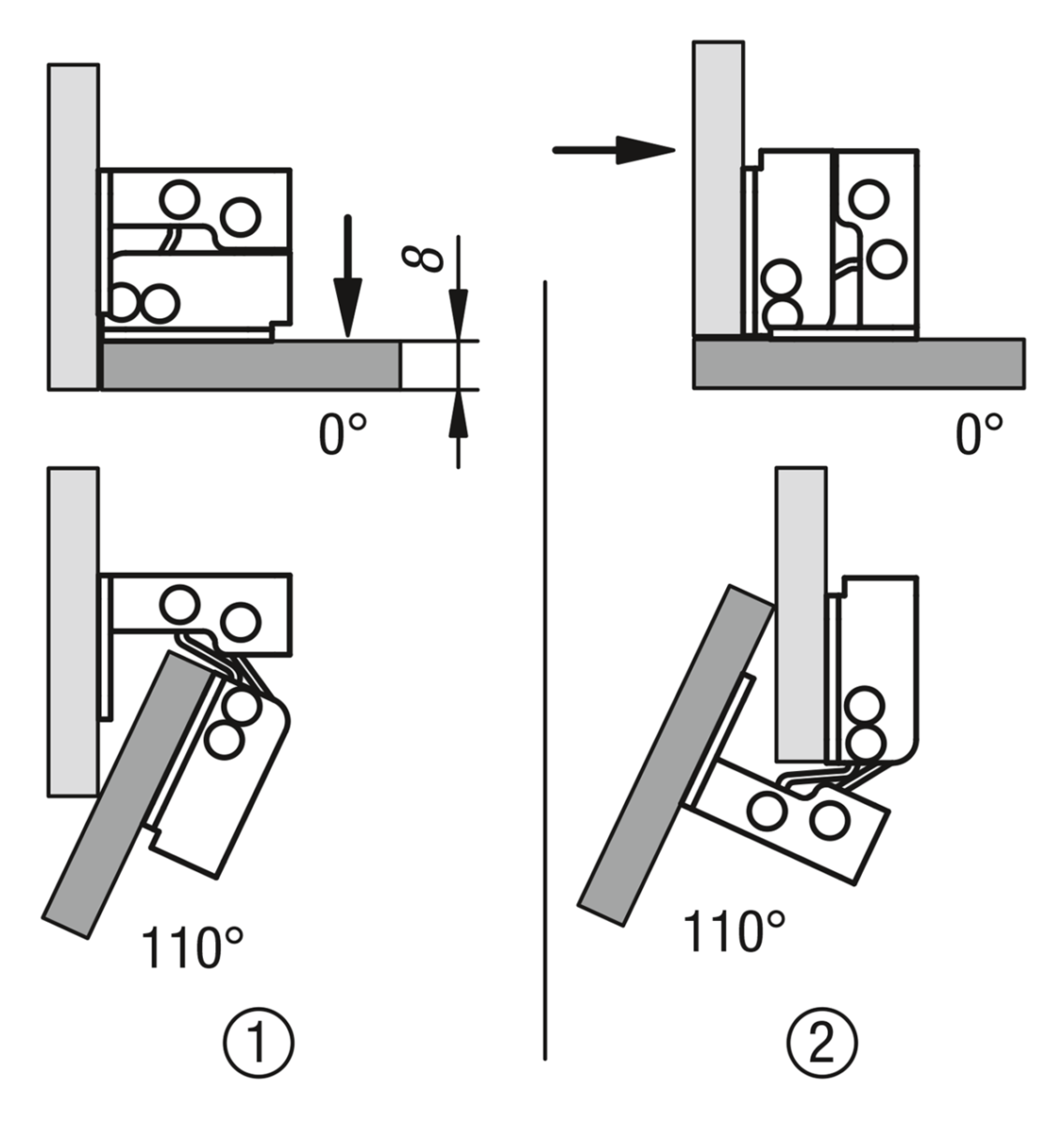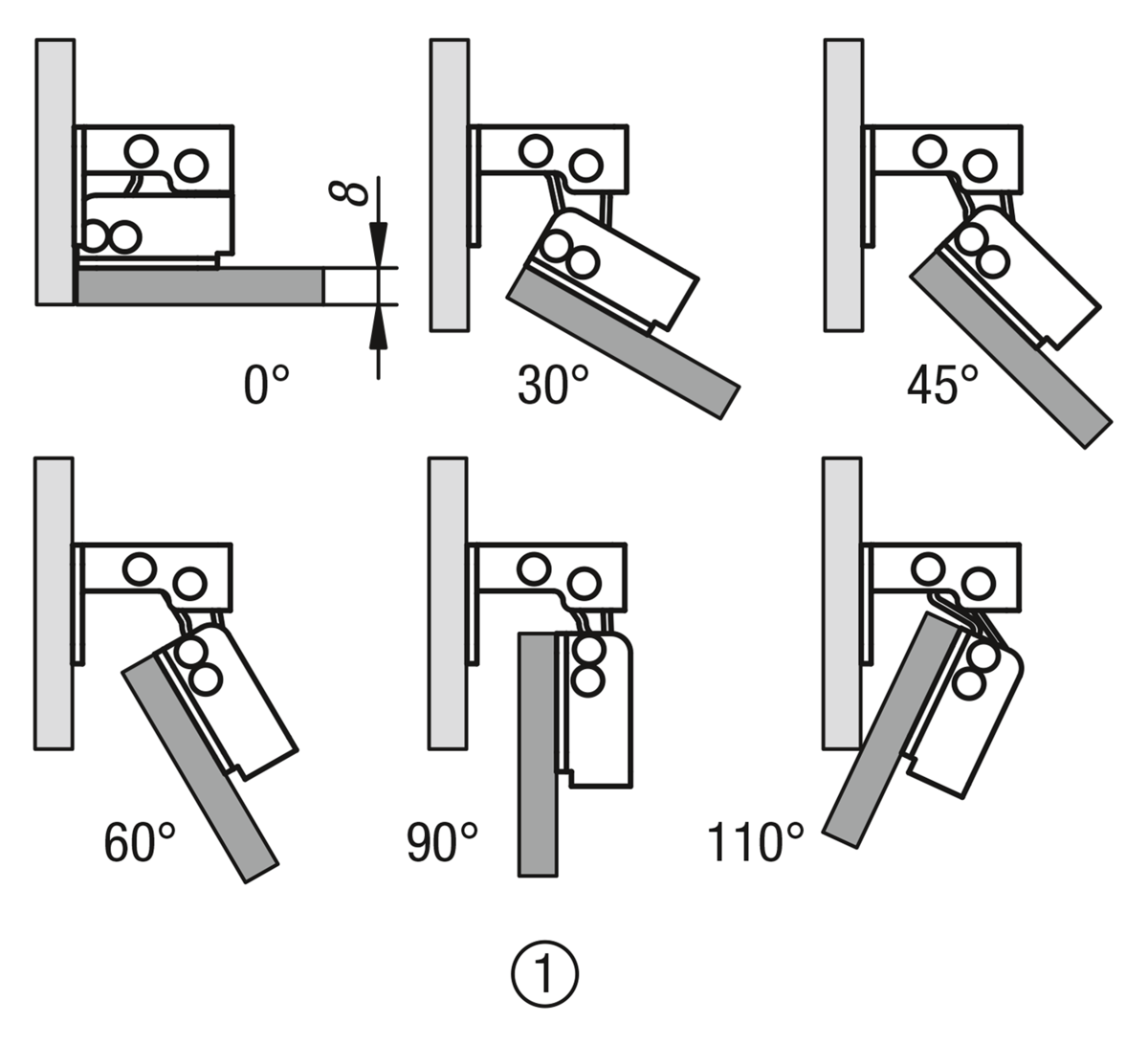 - max. 8 mm material thickness: opening angle 110°