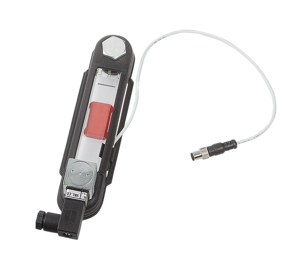 The oil level is measured using a float element with a magnet that activates the electrical contact when the REED level switch is reached. If the oil level falls below a particular level, an electrical pulse can be emitted.