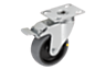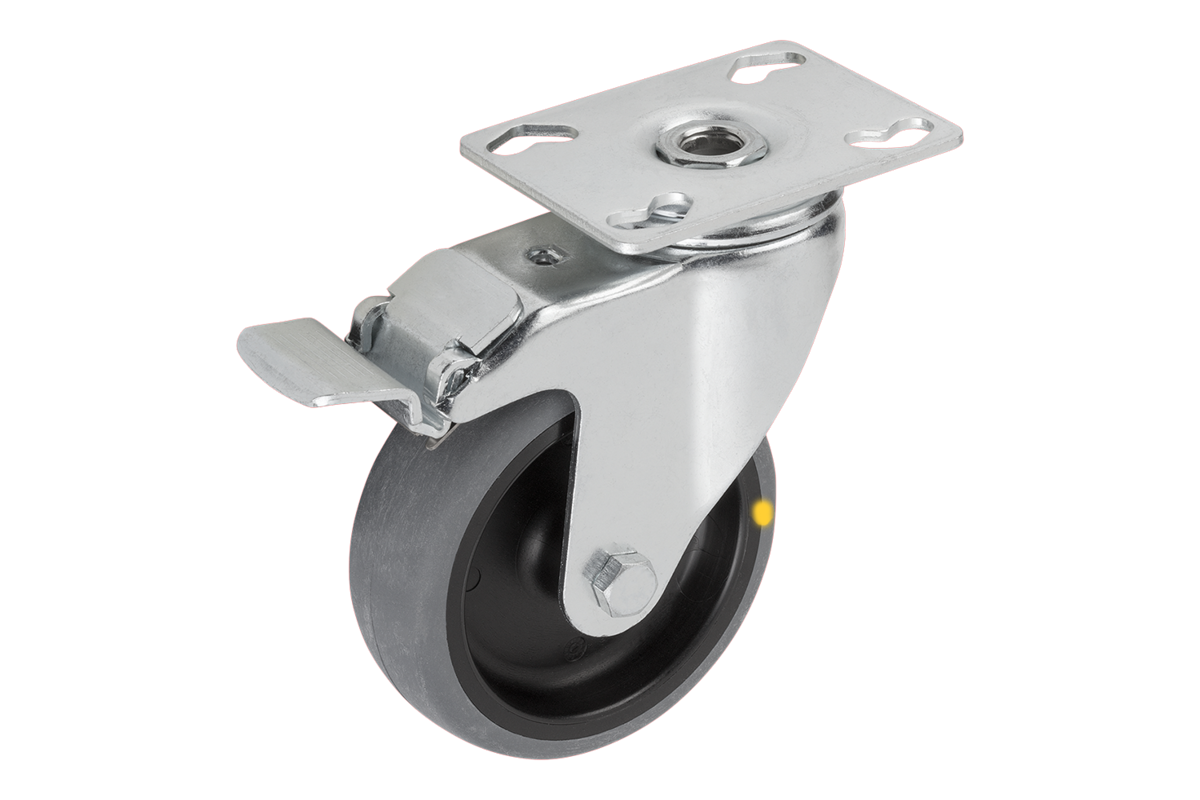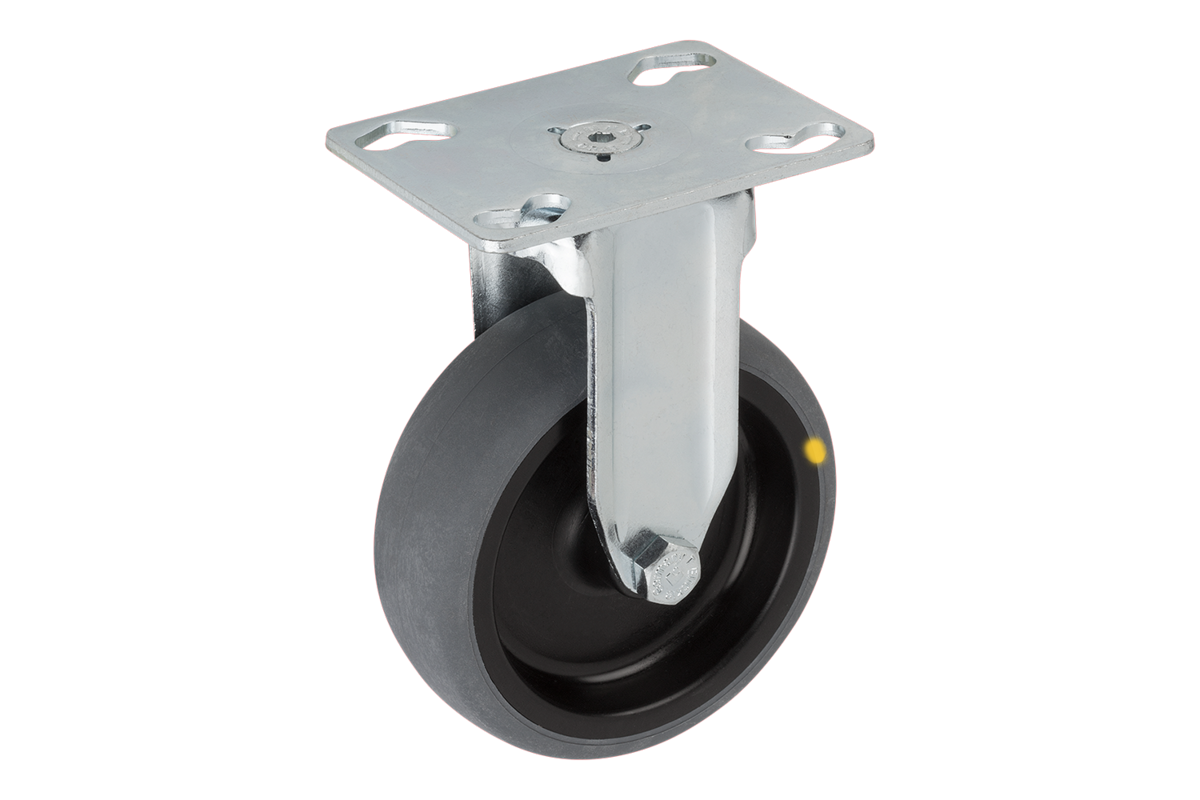 Wheel axle threaded. Fixed castors with mounting plate. Electrically conductive wheels, non-marking grey. The ohmic resistance of the wheel ≤ 10⁴Ω.