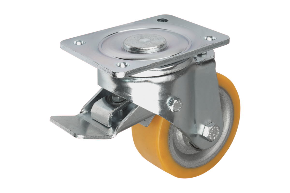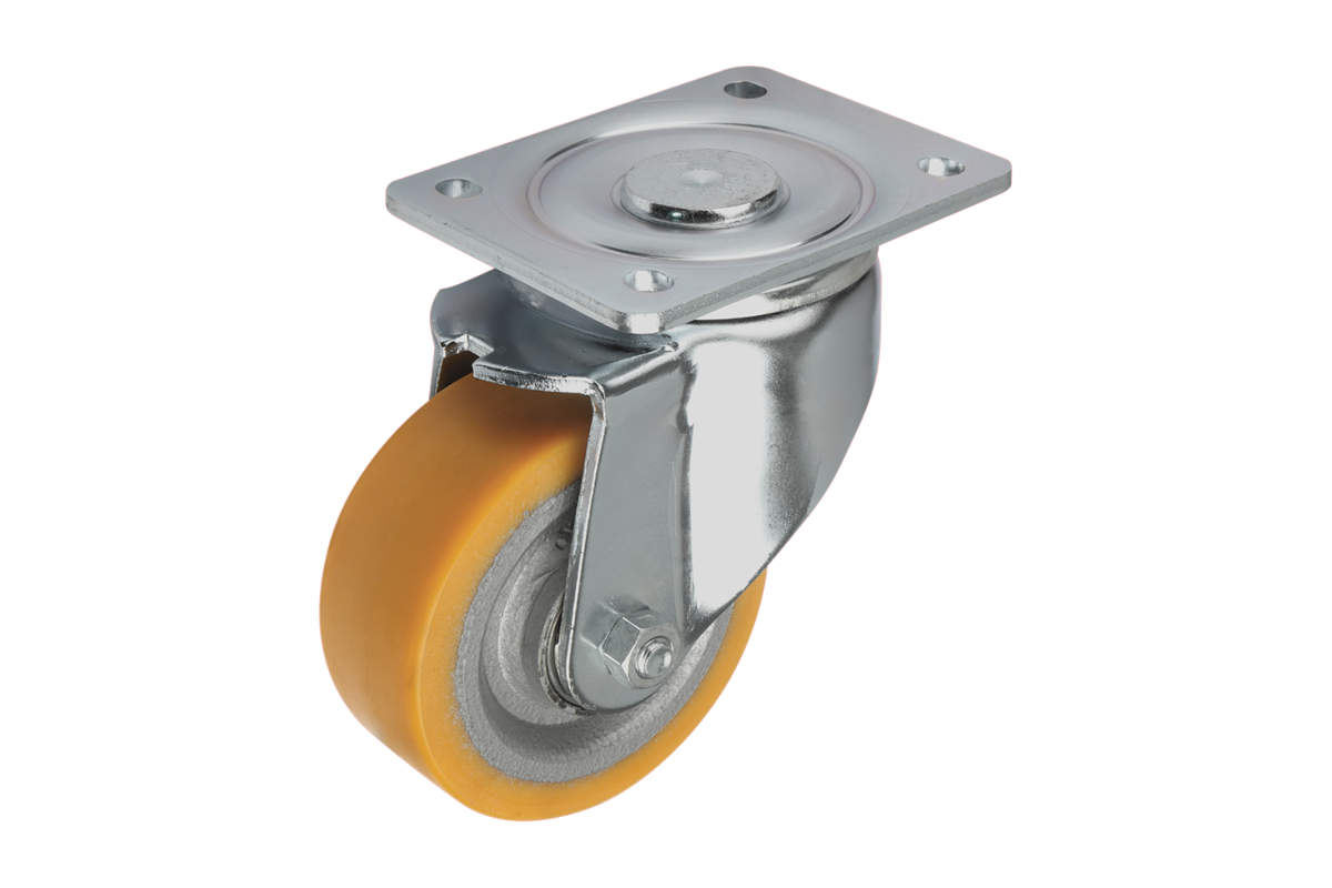 These castors are particularly shock and impact proof. The treads resist abrasion and are elastic and low-noise. Wheel axle bolted.