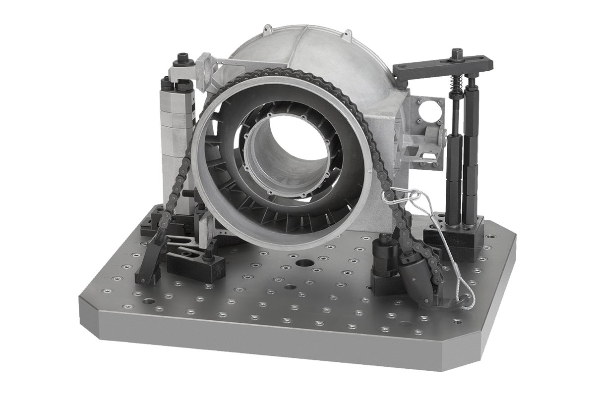 Chain clamps enable cylindrical, complicated and large to very large workpieces to be clamped securely and effectively in the quickest and easiest way.