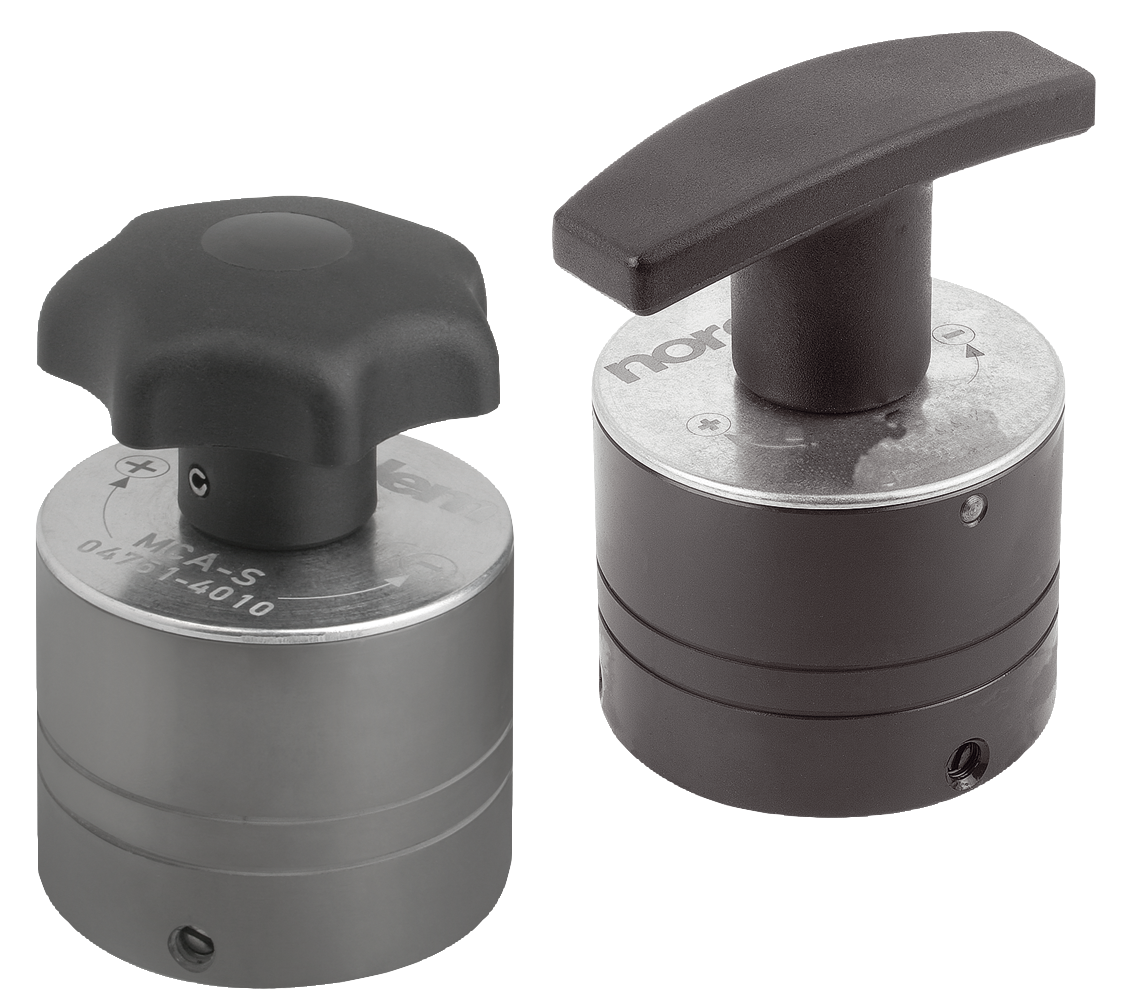 The clamp nut with star or T-grip are an improvement based on the tried and tested clamp nut 04750. A star or T-grip replaces the operating hexagon and an added indexing mechanism complements it. An integrated planetary gear serves as the force multiplier, the indexing mechanism triggers the automatic switch from the placing movement to the actual application of force. As a result, considerable clamping forces can be achieved with the simplest manual operation, with no additional ring or socket spanner. The robust construction and self-limiting function guarantee a high level of operating safety. Clamp nuts are used far beyond mechanical engineering for purposes in which high tension and clamping forces are required with the least possible expense. Clamp nuts are maintenance-free under normal operating conditions (max. 120 °C).