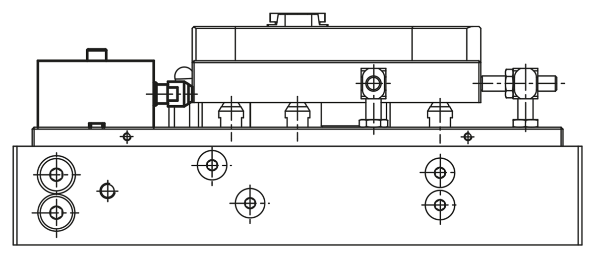 If the block cylinder is mounted transversely to the cylinder axis, additional support for the block cylinder is recommended. If the block cylinder is used as a thrust cylinder, the support should be on the underside; if it is used as a traction cylinder, it should be on the rod side.