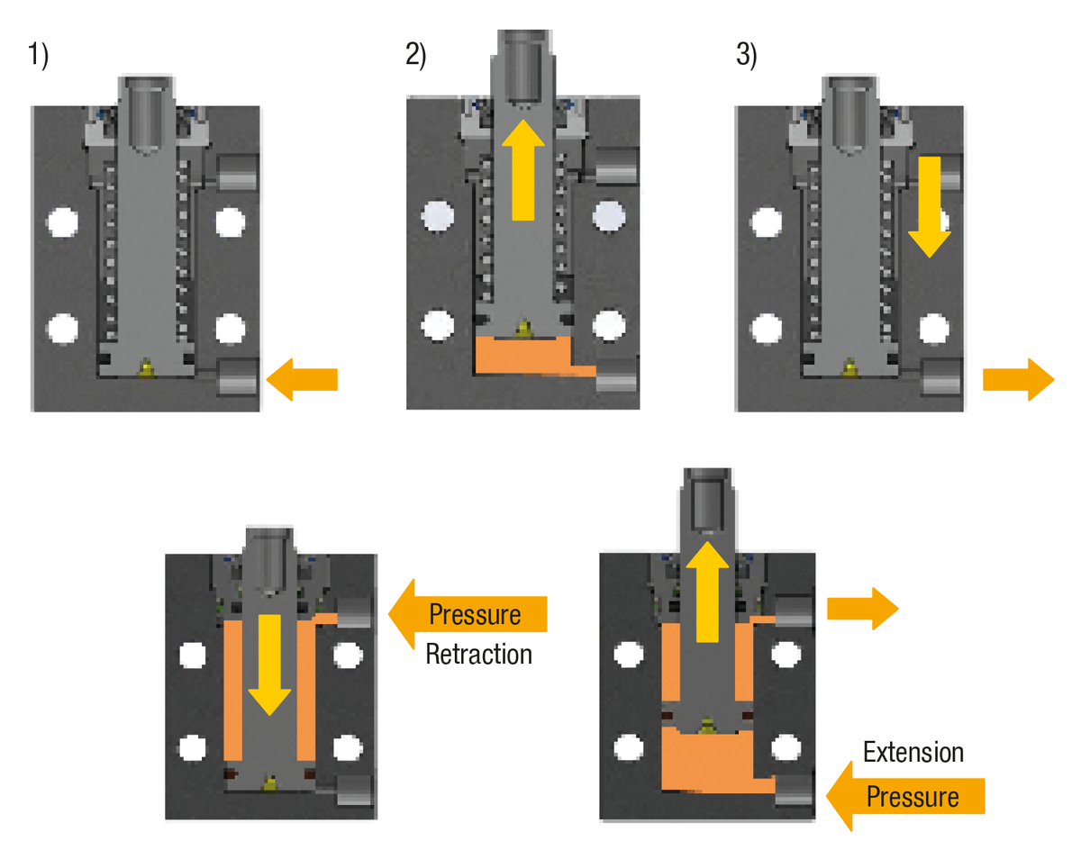 Larger piston diameters, longer strokes and with position control.