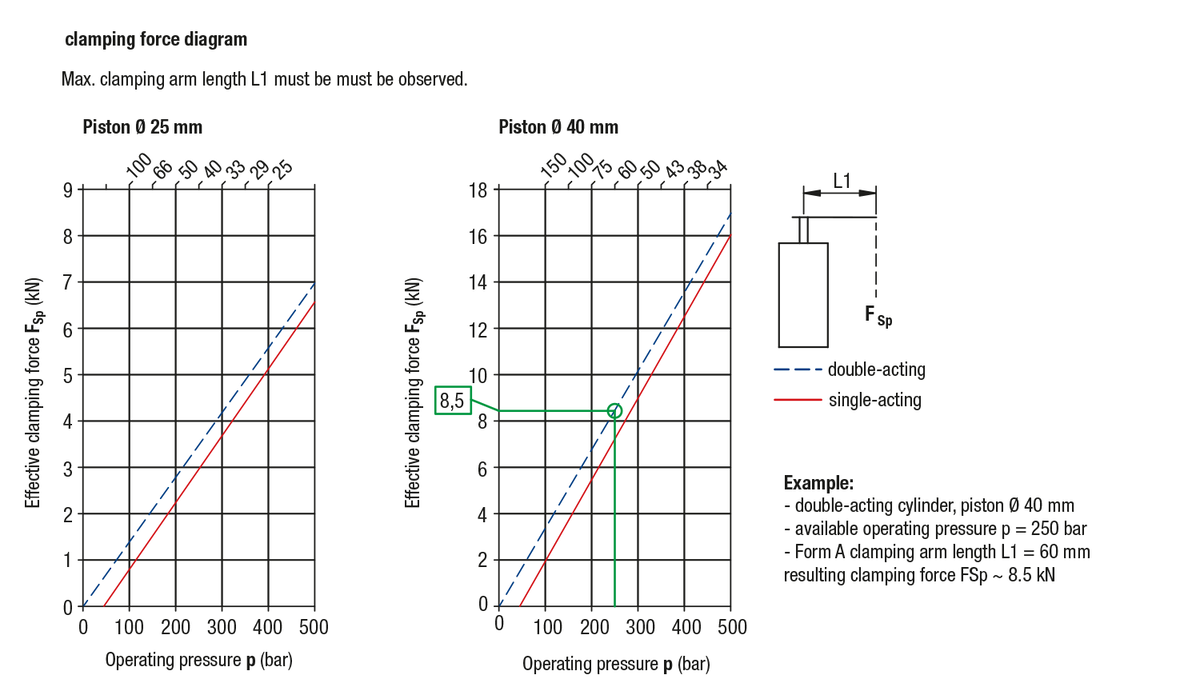 The clamping force diagrams for the swing clamps are decisive for the dimensioning of the clamping arms.