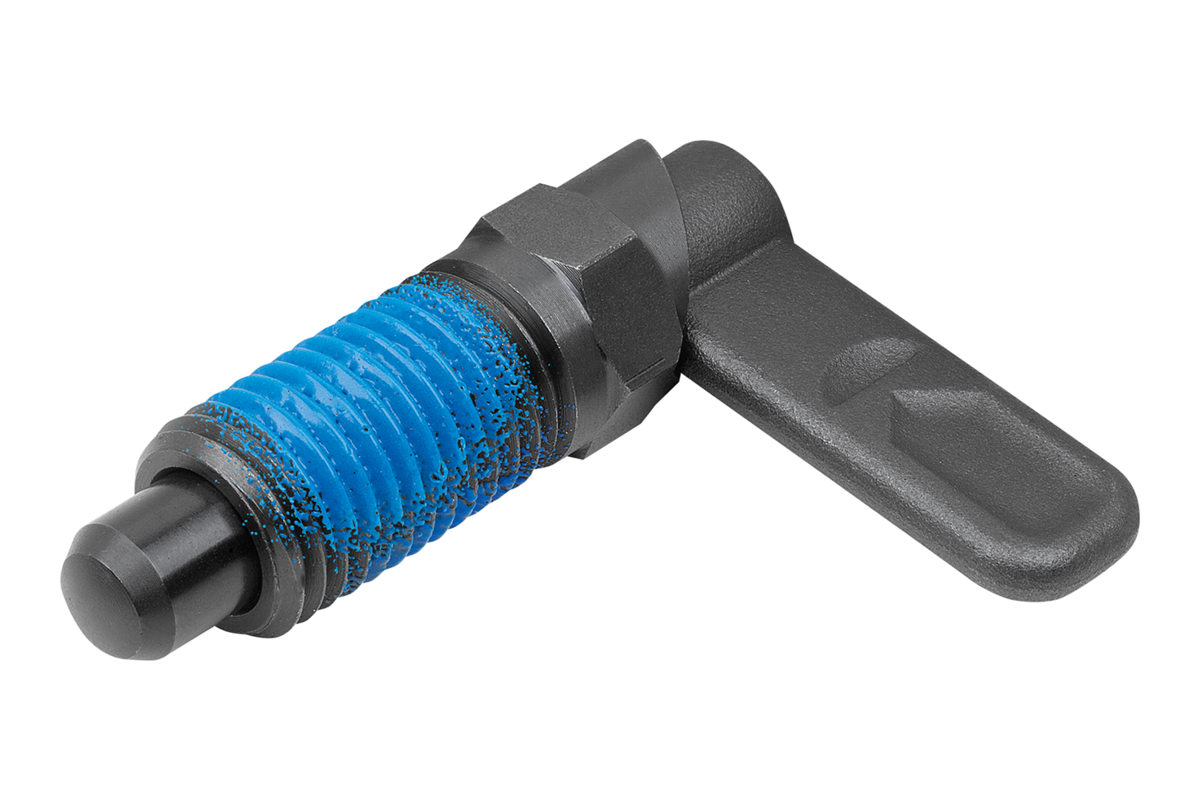 Cam-action indexing plungers are used where any change in locking position due to lateral forces should be prevented. Turning the grip through 180° retracts the indexing pin, enabling a change in the indexed position. The notch ensures that the grip remains in this position and the indexing pin remains retracted.