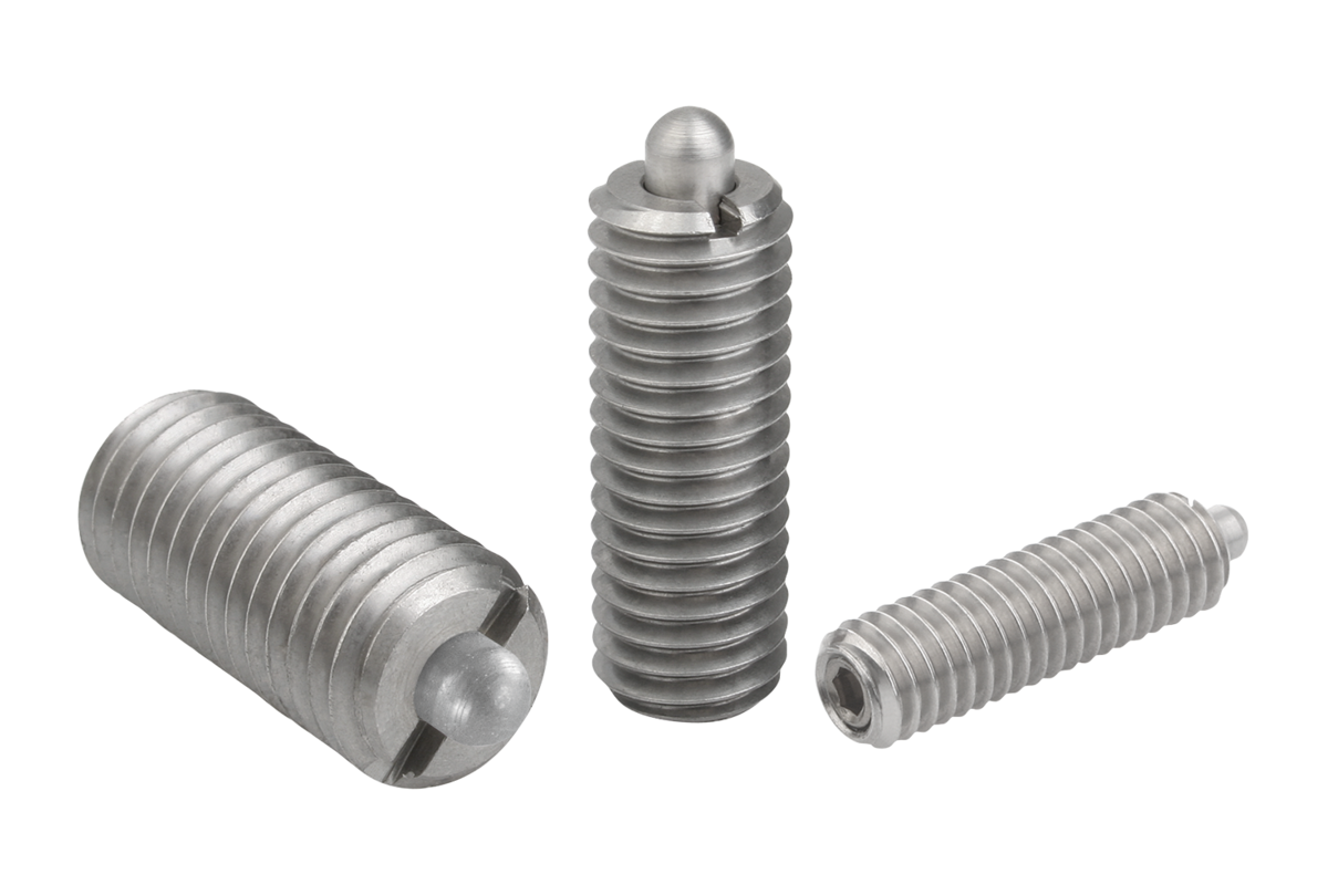 Spring plungers with hexagon socket and thrust pin, stainless steel, strong spring force