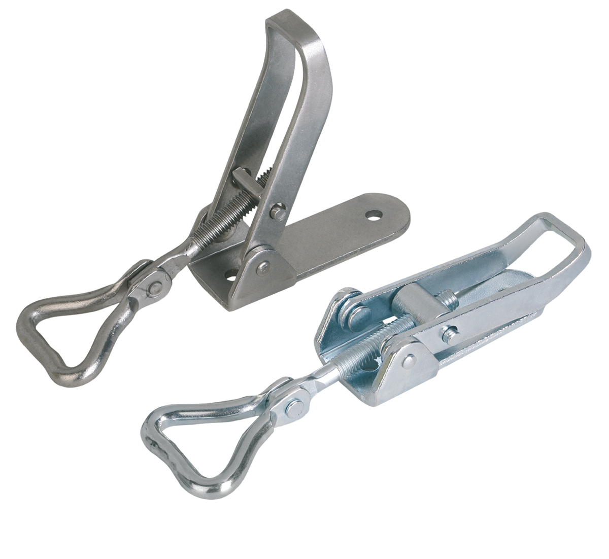 Adjustable latches are secure locking systems for industrial applications. By exceeding the dead center they resist vibration. To compensate for tolerances the latch has a swing mounted bail.