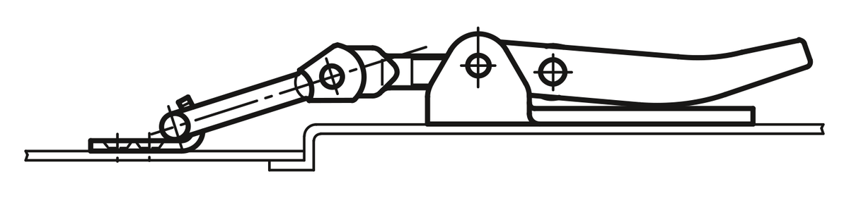 After the bail is engaged with the catch plate, the parts to be locked can be drawn together by up to 15 mm by pushing the lever down. To compensate for tolerances or to create enough tension the bail length can be adjusted by the M6 threaded spindle.