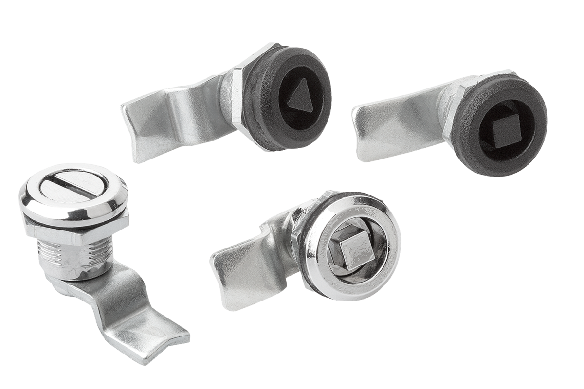 This quarter-turn lock is vibration-resistant through a detent mechanism in the end position. Right or left mounting with 90° closing and internal rotation limit. The quarter-turn lock can be installed pre-assembled (limitations by small A-dimensions and thick doors). Tested according to DIN EN 60068-2-64 (vibration) and DIN EN 60068-2-27 (shock), test standard 61373. Vibration-proof as per rail applications category 1, class B requirements (highest requirement).