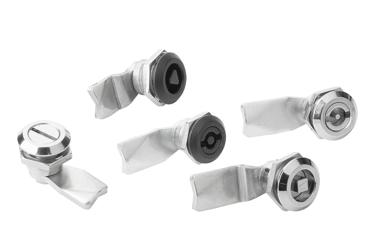 Quarter-turn lock is vibration-resistant through a detent mechanism in the end position. Right or left mounting with 90° closing and internal rotation limit. The quarter-turn lock can be installed pre-assembled (limitations by small A-dimensions and thick doors). Tested according to DIN EN 60068-2-64 (vibration) and DIN EN 60068-2-27 (shock), test standard 61373. Vibration-proof as per rail applications category 1, class B (highest requirement). The fastening nut has claws allowing it to be used as an earthing nut.