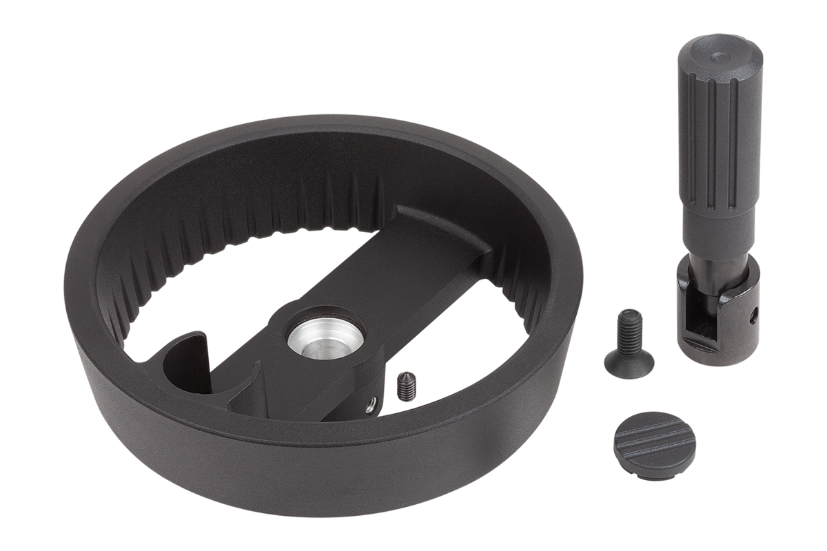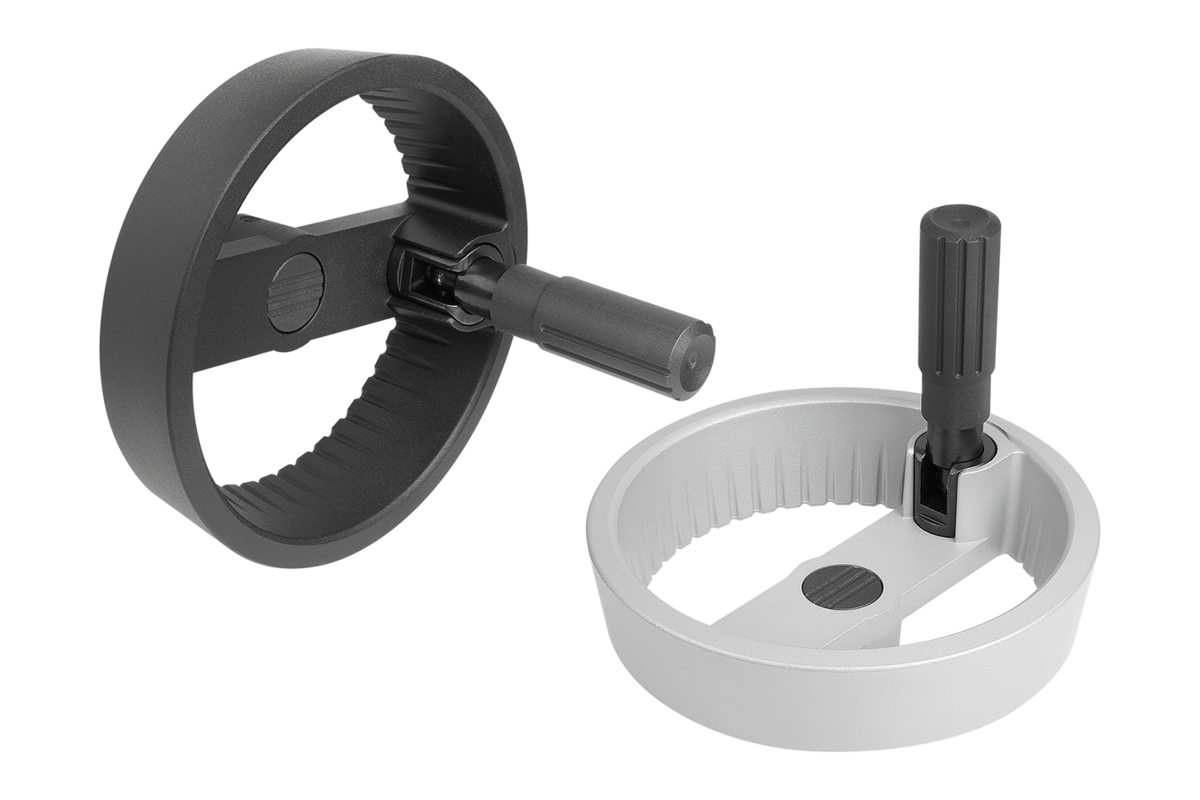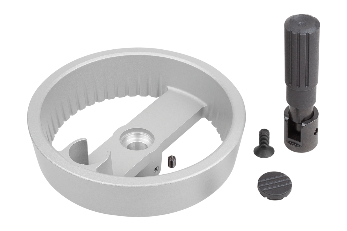 The handwheels can be secured to a shaft using a transverse pin or by parallel key connection together with a DIN 6912 cap screw and a handwheel washer 07375.
