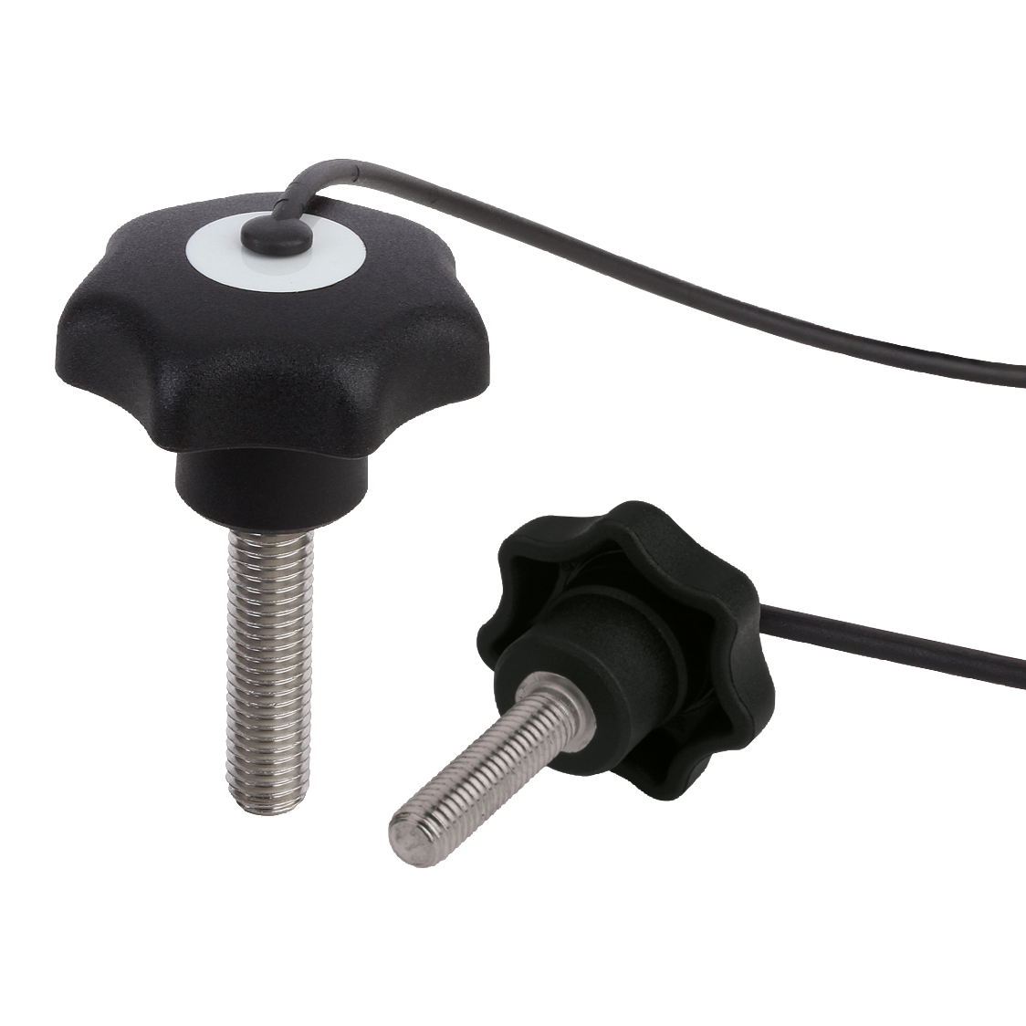 Attach the safety cable to a base to make the star grip unlosable. The star grip cannot be moved far from the object to which it belongs, simplifying screwing and unscrewing of the grip and ensuring against loss.