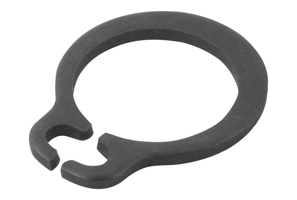 DIN 471 circlips are retaining rings mounted in a groove on a shaft OD. They withstand high axial forces between machine elements (e.g. bearings) and the groove in which the ring is mounted.