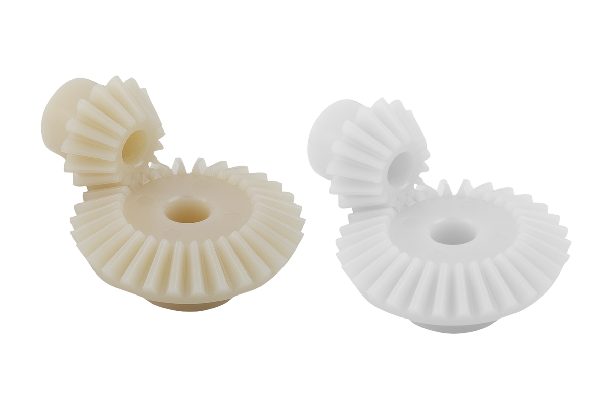 Injection moulded, straight teeth. Engagement angle 20°. Axis angle = 90°.