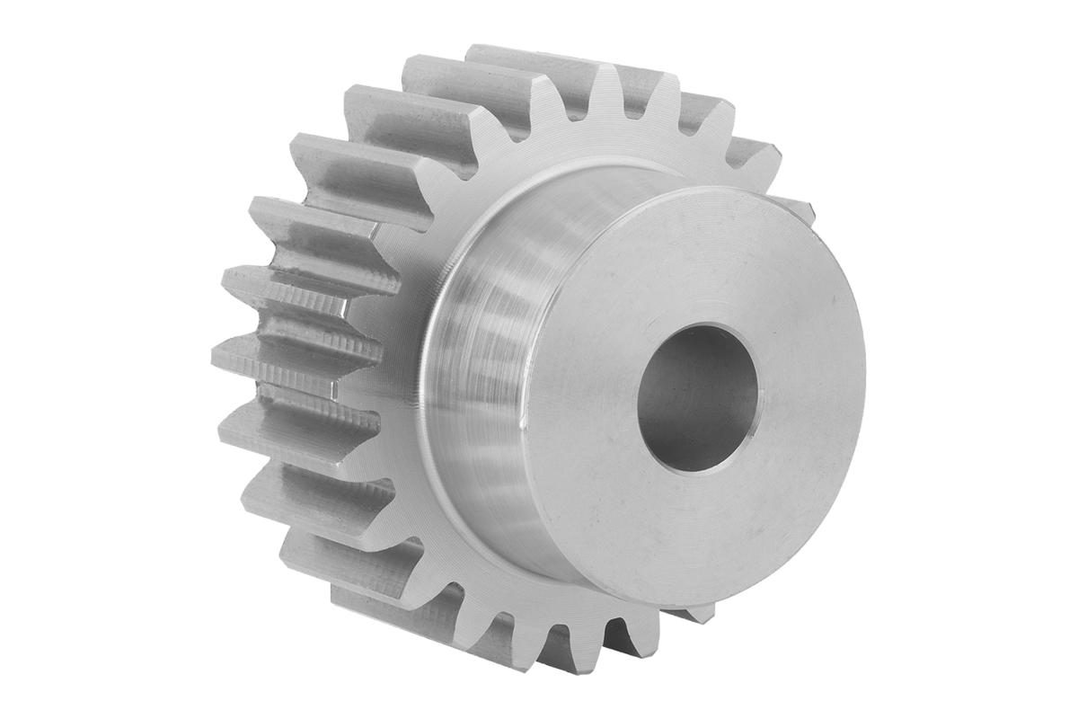 Spur gears stainless steel, module 2 toothing milled, straight teeth, engagement angle 20°, Form A with hub