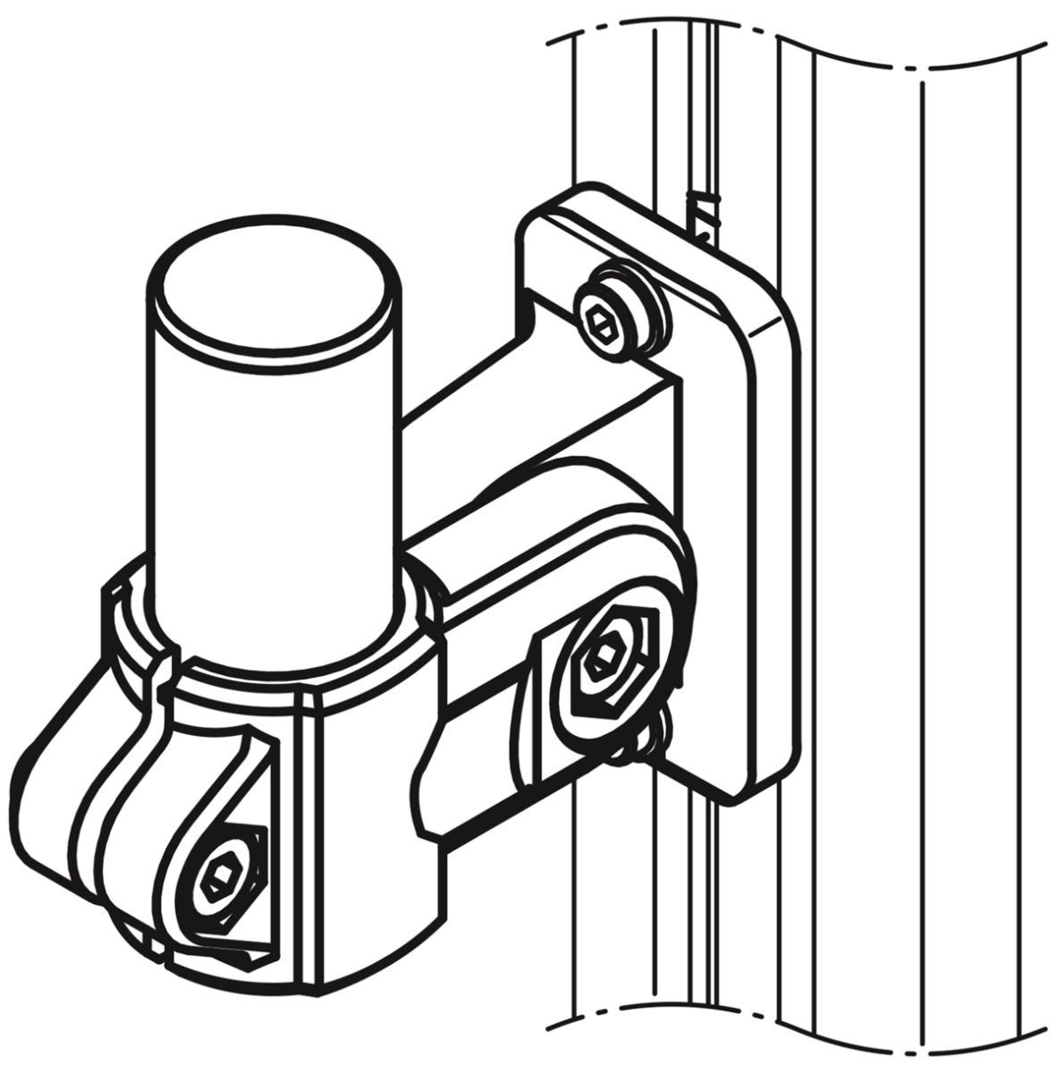 Bracket for supporting the monitor holder. Connection to the aluminium profiles and so to the machine frame with slot keys.