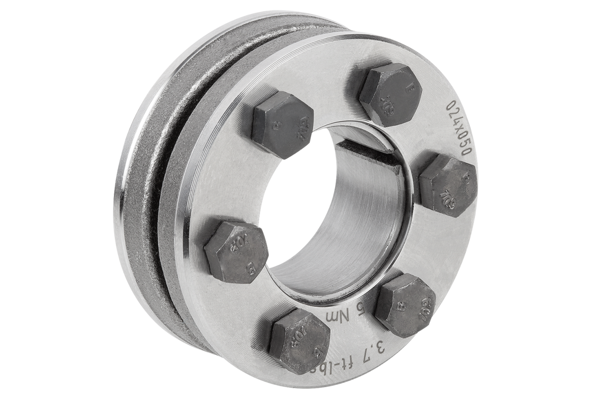 Shrink disc to connect a hollow hub to a shaft. They are mounted on the OD of the hub and generate pressure on the hub wall by reducing the ID with wedge-formed rings, creating a press fit between the hub and shaft. They are suitable for static, dynamic and shock loads.