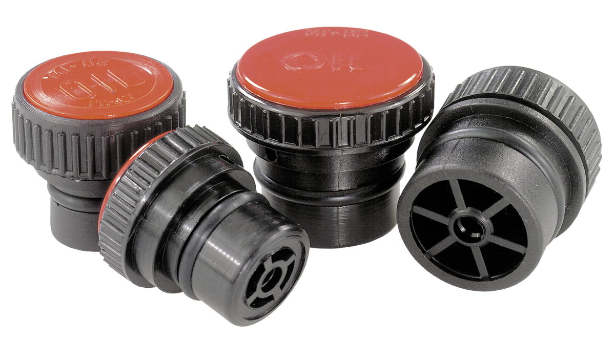 Housing, cap in thermoplastic polyamide 66. Rubber O-ring (NBR).