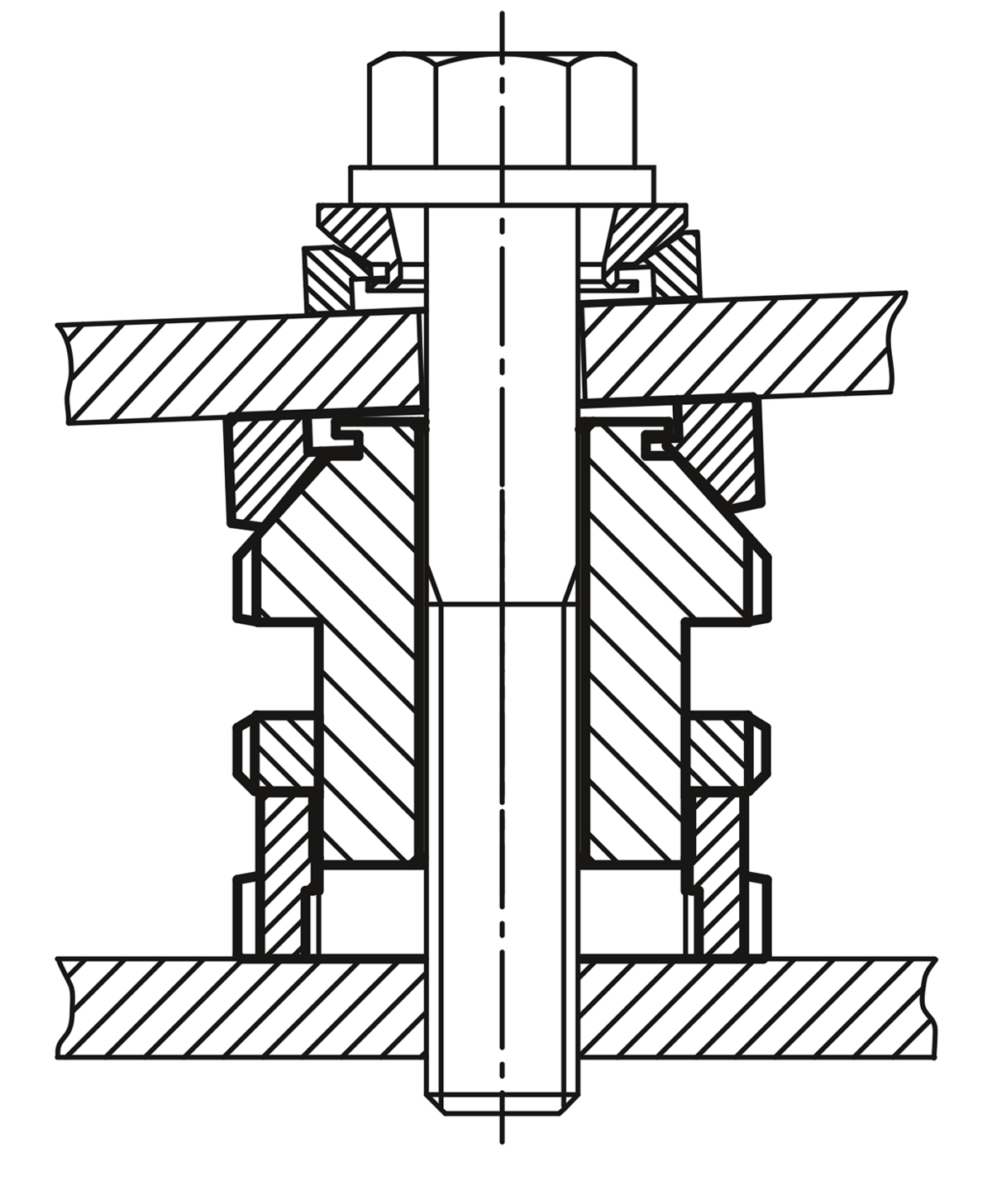 The spherical washer levelling set with locknut is used to mount and align motors, aggregates, drive units and production lines. The spherical washer permits exact alignment when mounting on sloping surfaces of up to 4°. The locknut secures a prescribed setting.